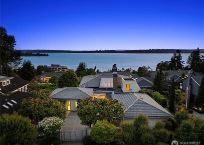This luxury home boasts a rare bluff setting w/ one of Kirkland’s best views. Designed by Robert Reed, it blends modern PNW architecture w/ Mexican designs inspired by Luis Barragán & Ricardo Legorreta. Built by Bender Chaffey, it features 36” thick angled stucco/metal walls. The 6 BD, 5.5 BA, 5,500 SF home includes an entry w/ a fountain, indoor courtyard w/ fireplace, real stucco, natural stones, & doors like modern Mexican homes. It offers high ceilings, large windows, built-ins, multiple courtyards, a living room... Listing Courtesy of Northwest MLS / Windermere Real Estate/East |
