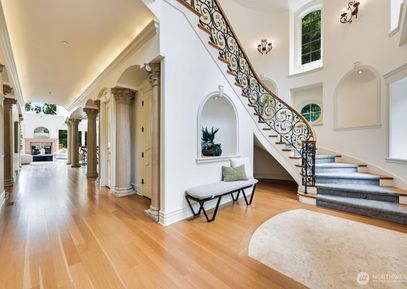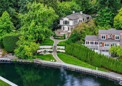 A distinctive gated estate in one of the nation’s most coveted neighborhoods. This Mediterranean-style residence features cathedral ceilings, Italian columns, and French doors opening to serene patios and a 200-ft dock with year-round moorage. Gorgeous wrought iron railings, crystal chandeliers, and a whole-house sound system add to the refined ambiance. Each bedroom is an ensuite. Downstairs offers relaxation with a wine cellar, spa, cold bar and terraces. Chef’s kitchen is outfitted with brand-name appliances. Curved... Listing Courtesy of Northwest MLS / Marketplace Sotheby's Intl Rty |