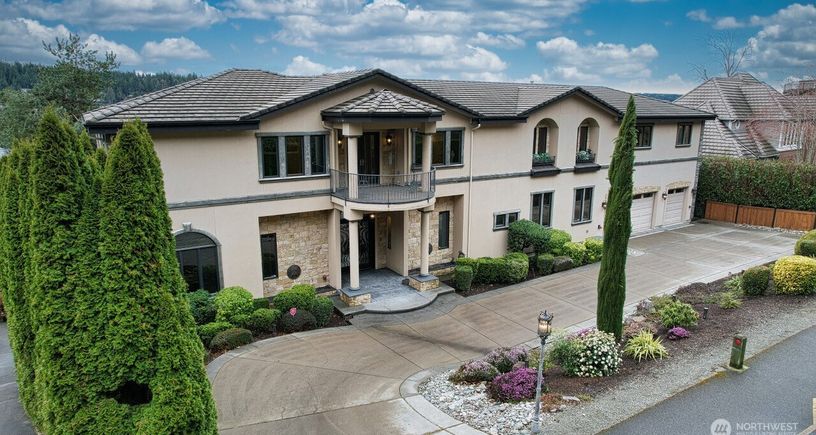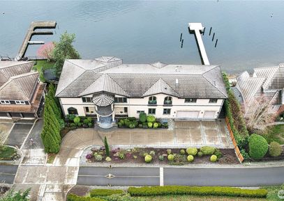 Classic Mediterranean Architecture meets Lake Sammamish at this Low-No Bank East Lake Sammamish Residence featuring 117' of Waterfront, shared Dock situated to the Edge of a Panoramic view of the Lake and Cougar Mountain beyond. There is so much to enjoy, 2 Primary Suites, 2 Full Kitchens, High Ceilings, Open Floor Plan to View Lake, Mountain and Garden views from Windows and Decks from All Gathering and Bedrooms. Access to the Sammamish Trail and Beyond to Parks and Recreation. Convenient and Close to Redmond or Issaquah... Listing Courtesy of Northwest MLS / Workman Real Estate Services |