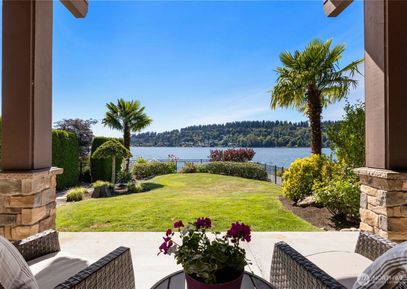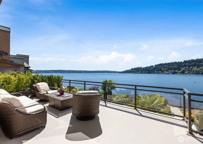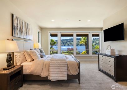 Sparkling lake views and breathtaking sunsets define this luxurious waterfront home in Barbee Mill on Lake Washington. Expansive windows flood the home with natural light, highlighting high-end finishes, tall ceilings, a heated primary floor, elevator, and Hunter Douglas blinds. Enjoy seamless indoor-outdoor living with decks or patios on every level, plus a fully fenced yard and immaculate landscaping. Watch eagles soar from your sunny deck or relax with views of downtown Bellevue. Just 5 miles to Bellevue with easy access... Listing Courtesy of Northwest MLS / Windermere Real Estate/East |