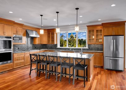 Custom built 2015, this 6-bed Magnolia home offers light-filled open plan w/ territorial views. Hardwoods & rich millwork throughout. Yr round comfort w/ AC. Chef’s kitchen features 10-ft island, dual ovens/dishwashers/sinks, abundant shaker cabs, walk-in pantry w/ built-in workspace, bar w/ bev cooler—flows to deck for gatherings. Gas fireplace. Spacious beds. Primary Suite w/ Juliet balcony, generous WIC w/ built-ins, spa-style bath w/ skylight, dual sinks, soaking tub, dual-headed shower & heated floors.Impressive... Listing Courtesy of Northwest MLS / Windermere Real Estate GH LLC |