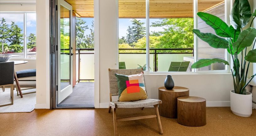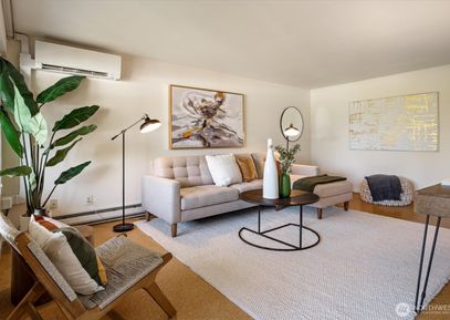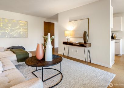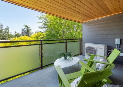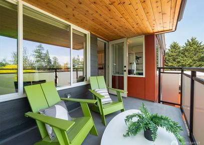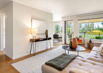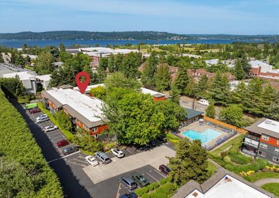 Exceptional top floor corner unit with beautiful view of trees, lake, and mountains. AC throughout via an efficient HEAT PUMP. Elevator access to this quiet unit that overlooks a lush, landscaped courtyard framing the view beyond. This lovely 1-bedroom unit has a large living room, large covered deck & picture windows that showcase the view. This open interior space leads to kitchen w/ dining area and a large bedroom & full bathroom down the hall. Professionally managed HOA w/ cabana, pool, beautiful grounds, assigned parking,... Listing Courtesy of Northwest MLS / Windermere RE Greenwood |