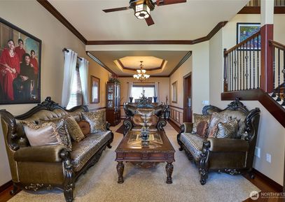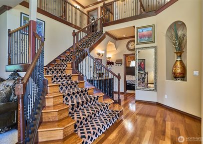 Move in ready for your tenants ! Absolutely gorgeous house w/ 5 bedrooms w/ 3 - Car Garages. New interior paint !! Formal Living & Dining room w/ Coffered ceilings. Island Kitchen w/ granite slab counters, hardwood floors. Spacious Family room w/ FP. Master suite is spectacular w/ Jetted tub, w/ full tile surround in shower & countertops & Fireplace to sit & relax. Fully Landscaped with matured and manicured garden and Palm Trees. Large well kept custom built deck in the backyard to sit & relax in sunny days w/ friends.... Listing Courtesy of Northwest MLS / John L. Scott, Inc. |