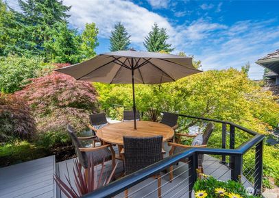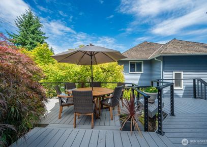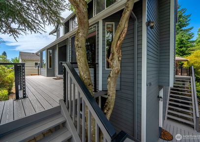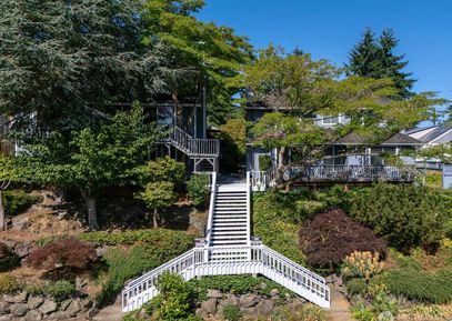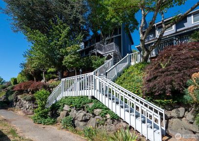 This enchanting home is perched high above the street, nestled among evergreens and lush foliage. The main level has a formal dining room, living room with fireplace, gleaming hardwoods, kitchen with dining space, half bath and laundry room. Upper level primary bedroom with en suite and walk-in closet, plus three bedrooms and full bath. The spacious lower level can be accessed from the main level or its own separate entry and has a rec room, bedroom, three-quarter bath, and individual furnace: a convenient home office or... Listing Courtesy of Northwest MLS / Windermere West Metro |