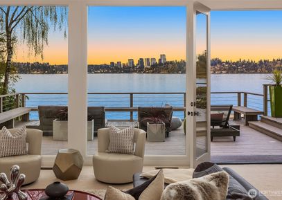 Turnkey & move-in ready 2-weeks from signed lease. Welcome home to this FULLY FURNISHED & stunning north-end Mercer Island mid-century modern w/180-degree lake & city skyline views! This artfully renovated waterfront residence was designed by renowned architect Reid A. Morgan, and features wall of glass framing picturesque Lake WA views from dawn to dusk. The two-story great room & outdoor living spaces offer a front-row seat to boaters, sunsets & the downtown Bellevue skyline. 82-feet of waterfront w/dock & boat lift. Floor... Listing Courtesy of Northwest MLS / Windermere PM/Lori Gill Assoc. |