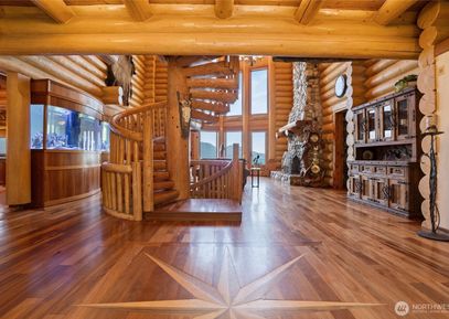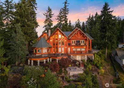 Perched gracefully above the sparkling expanse of Hood Canal, Journey’s End is not merely a home — it’s an heirloom of craftsmanship, where nature’s majesty meets architectural artistry!! This breathtaking waterfront estate offers 150+ ft of private shoreline, mooring rights, & steel stairs to the beach. Inside, find soaring 38-ft ceilings wrapped in Engelmann Spruce logs, crowned by clerestory glass, anchored by a monumental river rock fireplace, a chef’s kitchen, luxurious primary suite, junior suites, media... Listing Courtesy of Northwest MLS / Paramount Real Estate Group |
