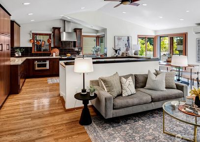 This remodeled mid-centruy gem is located in the sought-after Broadview neighborhood, tucked away on a quiet cul-de-sac. Enjoy stunning Puget Sound views & vibrant sunset hues, while surrounded by the fragrant scent of mature jasmine. A serene retreat offering beauty, privacy & classic NW charm. Two beautifully appointed kitchens w/ goumet appliances, rich hardwood floors, mini-split system & spa-like bathrooms w/ heated floors. Thoughfully remodeled and redesigned in 2010 down to the studs, this 3-bdrm home is fully ADA... Listing Courtesy of Northwest MLS / COMPASS |