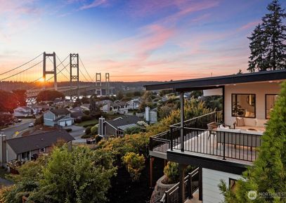 Experience elevated living in this custom-designed dream home with sweeping views of the Narrows Bridge&the Sound.The main floor features a luxurious primary suite with a custom spa bathroom,smart toilet/bidet,and heated flooring in all baths &panoramic views.A chef’s kitchen impresses w/custom cabinetry, high-end appliances,large island,quartz c/tops,built-in TV/fridge,&bar w/cooler.Entertain on the covered deck w/custom tile&railings.2more bedrooms,a large office,&a custom powder room round out the main level. Downstairs,a... Listing Courtesy of Northwest MLS / eXp Realty |