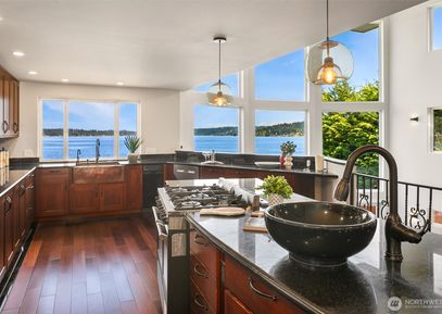 The perfect blend of European flair meets PNW design on the West Coast of Lake Sammamish. Significant in stature & timeless in design, this estate begs to be enjoyed for generations to come. Massive wrought iron & glass custom front doors foreshadow the splendor that awaits inside. Soaring ceilings, gleaming hardwoods & walls of glass create an awe-inspiring & airy ambience. Generous use of rich natural stone & custom wrought iron railings throughout. Every high-end accoutrement & more: gourmet kitchen w/walk-in pantry,... Listing Courtesy of Northwest MLS / COMPASS |