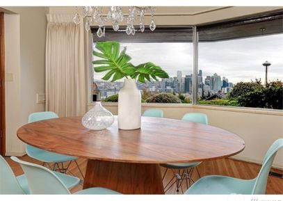 Rare rental opportunity in Queen Anne! Mid-century modern home features comfortable living areas and one of the BEST views of the Seattle skyline and Elliott Bay. Enjoy front row seating for Space Needle New Year’s Eve fireworks! Capitalizing on the AMAZING view from spacious living room, dining room, primary bedroom & kitchen. 3 bedrooms & 1.75 baths on main level. Large bonus room, work shop, and ample storage downstairs. Attached 2 car garage + street parking. Covered patio in backyard. Close to SLU tech hub. This location... Listing Courtesy of Northwest MLS / Windermere PM/Lori Gill Assoc. |