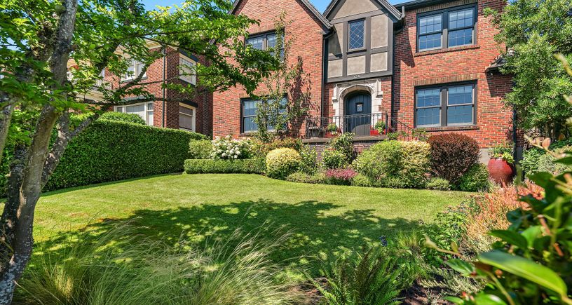 Meticulous and exquisitely renovated half-timbered brick Tudor perfectly perched to capture Space Needle and downtown views from Queen Anne’s highly desirable southwest slope. Generous spaces on 3-levels include a masterful addition by Bill Haas, expanding the eat-in kitchen with a fireplace, built-in benches and French doors opening to a romantic patio. Main floor offers dining, large living room with fireplace and built-in bookshelves. Wrought iron stairs lead to 3 bedrooms up including a gorgeous primary suite. Lower... |