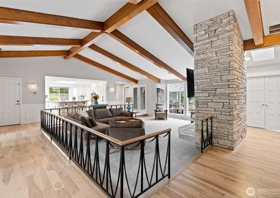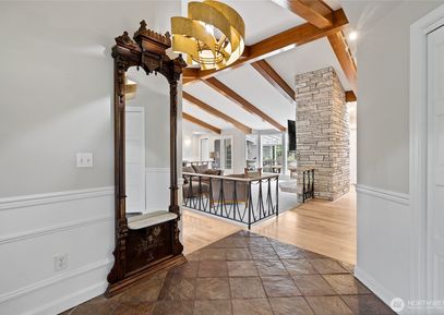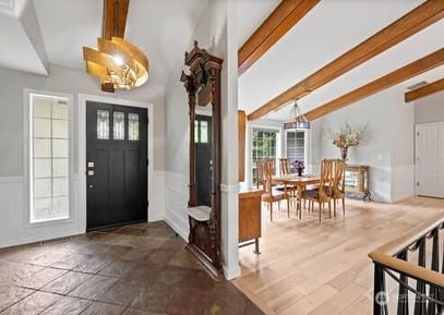 Beautifully updated craftsman style rambler with in ground pool! Great Room floor plan.Open beam vaulted ceilings & huge fireplace! Large landscaped lot, sprinkler system & fully fenced back yard. Garden areas, fruit trees, blue berry bushes & quiet areas to relax by the pool. Glass covered lanai off the pool area. All 3 bedrooms have their own ensuite bathrms and 1/2 bath off the Great Rm. Perfect home for entertaining! Custom kitchen w/large island, beautiful cabinets granite countertops & hardwood floors. Primary suite... Listing Courtesy of Northwest MLS / New Horizon Realty LLC |