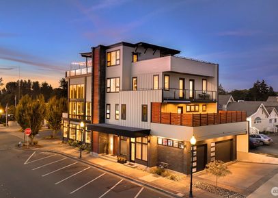 One of one. Striking contemporary mixed use building in the heart of the seaside town of Blaine. Intentionally designed to maximize the natural light & breathtaking views, run your business or rent out the 1,050 sq ft street level commercial space just steps from your upscale 4,841 sq ft home. The residence lives like a modern single family 3 bedroom home & features an elevator, 40’+ atrium with floating stairs, private 3 car garage + massive rooftop deck (1 of 4) with 360• views of the bay, mountains & White Rock city... Listing Courtesy of Northwest MLS / Windermere Real Estate Whatcom |