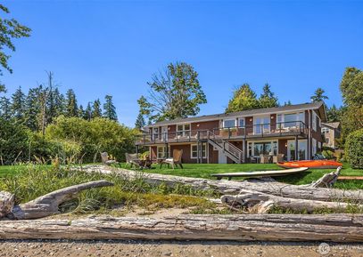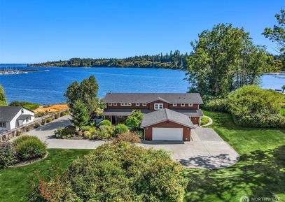 Tucked into downtown Kingston, this private waterfront estate offers 160' of sandy, no-bank beachfront on a rare .93 acre lot. Breathtaking views of Puget Sound, the Cascades, & the marina from nearly every room. Water-level entertaining area w/ wet bar, workout studio, mudroom & 2 guest suites. Upper great room w/ stone fireplace opens to a massive deck perfect for summer gatherings. The kitchen features bar seating, stainless appliances, & stunning views. Unwind in a primary suite w/ deck access, 2 walk-in closets & ensuite... Listing Courtesy of Northwest MLS / The Agency Bainbridge Island |